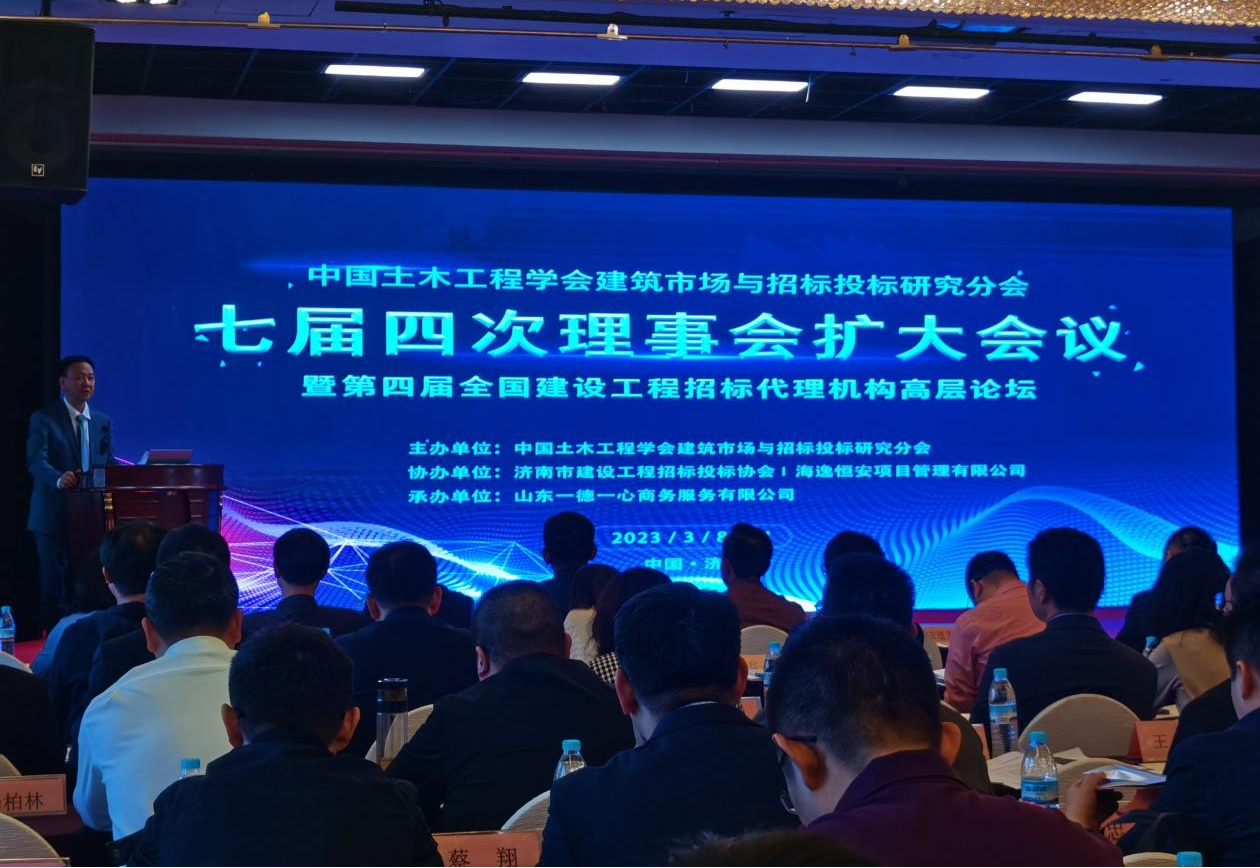 3月8日-10日,由中国土木工程学会建筑市场与招标投标研究分会主办的“七届四次理事会扩大会议暨第四届全国建设工程招标代理机构高层论坛”在山东省济南市隆重召开,来自全国多个省市的行业协会、代理机构齐聚济南,共襄盛会。住建部建筑市场监管司三级调研员张娟对会议的召开表示热烈祝贺,中国土木工程学会副理事长尚春明到会致辞,山东省济南市住建局副局长王冠一发表讲话。公司作为常务理事单位应邀参会。